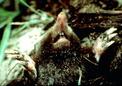 House mice can dig and may burrow into the ground in fields or around structures when other shelter is not readily available. Nesting may occur here or in any sheltered location. Nests are constructed of fibrous materials and generally have the appearance of a "ball" of material loosely woven together. These nests are usually 4 to 6 inches in diameter.† Litters of 5 or 6 young are born 19 to 21 days after mating, although females that conceive while still nursing may have a slightly longer gestation period. Newborn mice are naked and their eyes are closed. They grow rapidly and after 2 w3eeks they are covered with hair and their eyes and ears are open. They begin to make short excursions from the nest and eat solid food at 3 weeks. Weaning soon follows, and mice are sexually mature as early as 6 to 10 weeks old. Mice may breed year-round and a female may have 5 to 10 litters per year. Mouse populations can therefore grow rapidly under good conditions, although breeding and survival of young slow markedly when population densities become high.